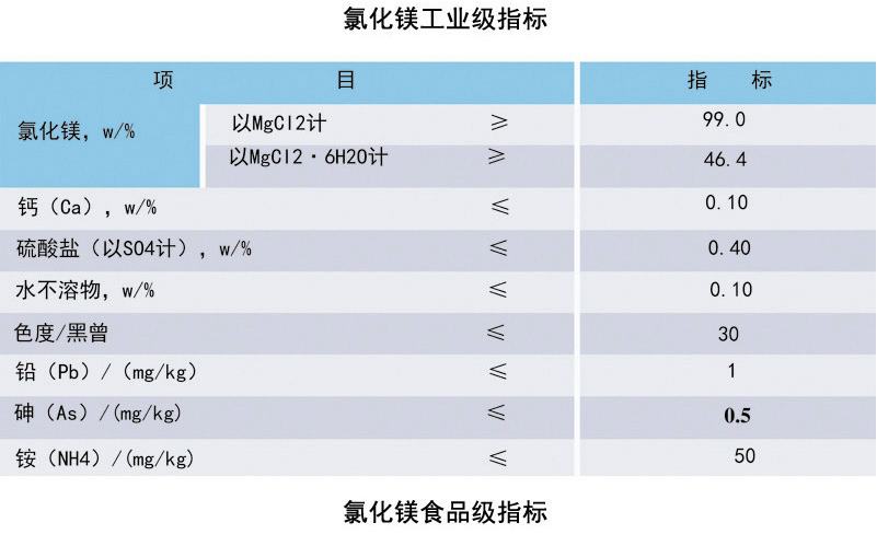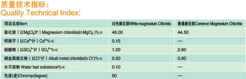 (1)按照含量分類:六水氯化鎂≥46% 無水氯化鎂≥99%