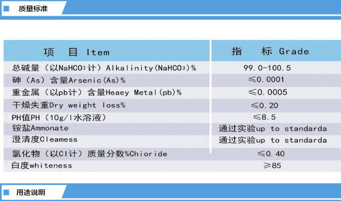 化學(xué)名稱:碳酸氫鈉 NaHCO3 產(chǎn)品用途:碳酸氫鈉俗稱小蘇打,產(chǎn)品呈白細(xì)小晶體,無臭、咸味。 物化性質(zhì):主要用于食品工業(yè)中做添加劑、橡膠工業(yè)中做發(fā)泡劑、醫(yī)藥工業(yè)中做制酸劑、消防器材發(fā)生劑、洗滌劑的配合剤、印染、紡織、滅火劑、研磨劑、化工助劑、電影制片的洗滌劑以及汽水、啤酒、飲料中的二氧化碳發(fā)生劑等。 |